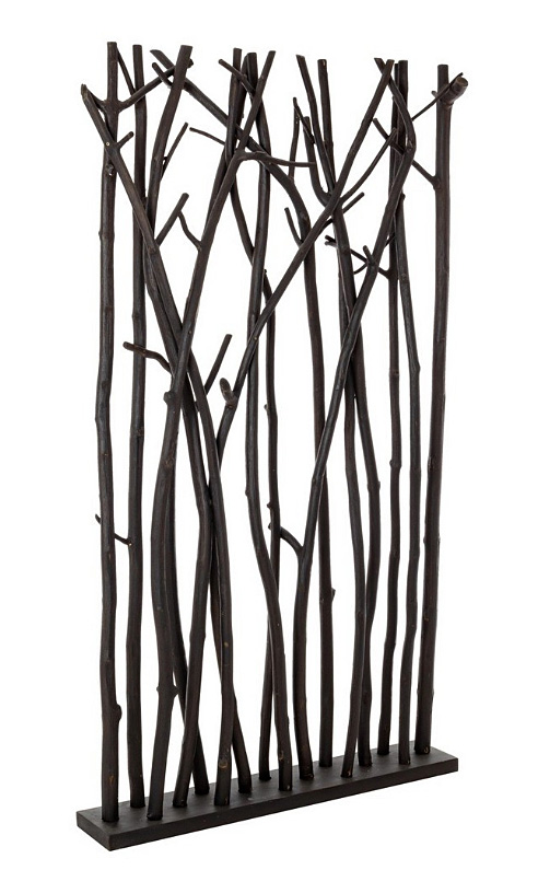 Eleva la decoración de tu hogar con este biombo de ramas negras de madera natural, una pieza escultórica que combina diseño orgánico y carácter contemporáneo. Inspirado en la forma libre de la naturaleza, este biombo está formado por ramas verticales teñidas en un elegante tono oscuro, montadas sobre una base sólida que le aporta estabilidad y presencia.