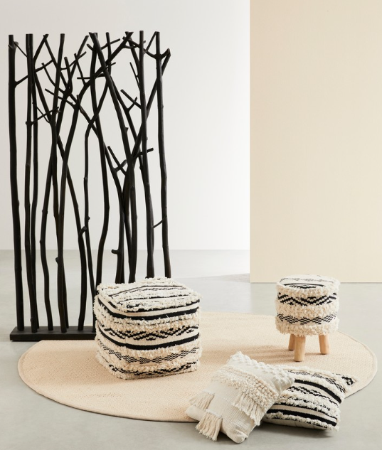 Su diseño abierto permite dividir espacios sin bloquear la luz, creando una separación visual ligera y sofisticada. Ideal para salones, entradas o zonas de lectura, este biombo decorativo se adapta perfectamente a estilos wabi-sabi, rústico moderno, étnico o industrial chic, aportando textura, contraste y un aire de serenidad.