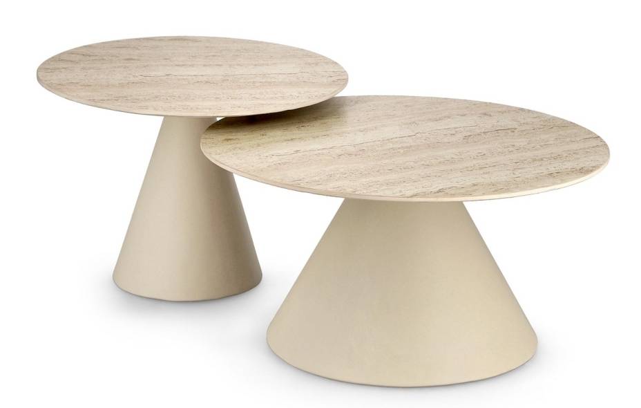 Set 2 mesas auxiliares efecto travertino y acero Hardy de lujo