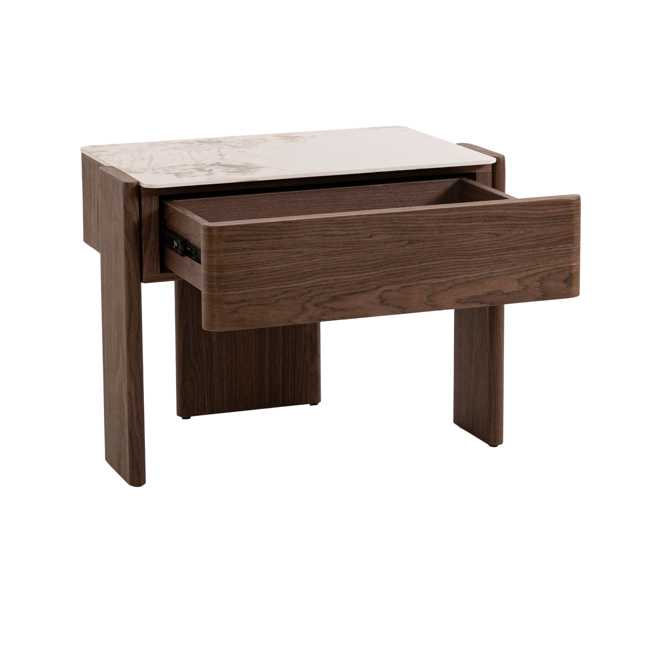 Mesa de noche Giovanni nogal y porcelánico de lujo