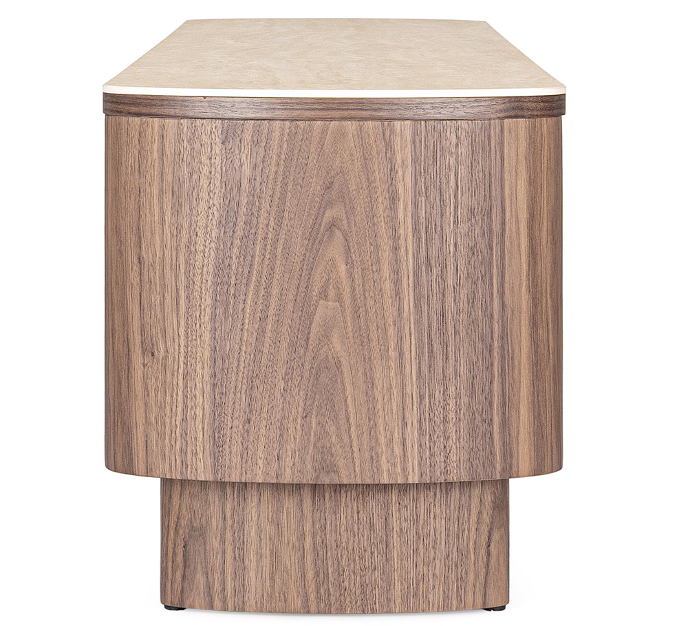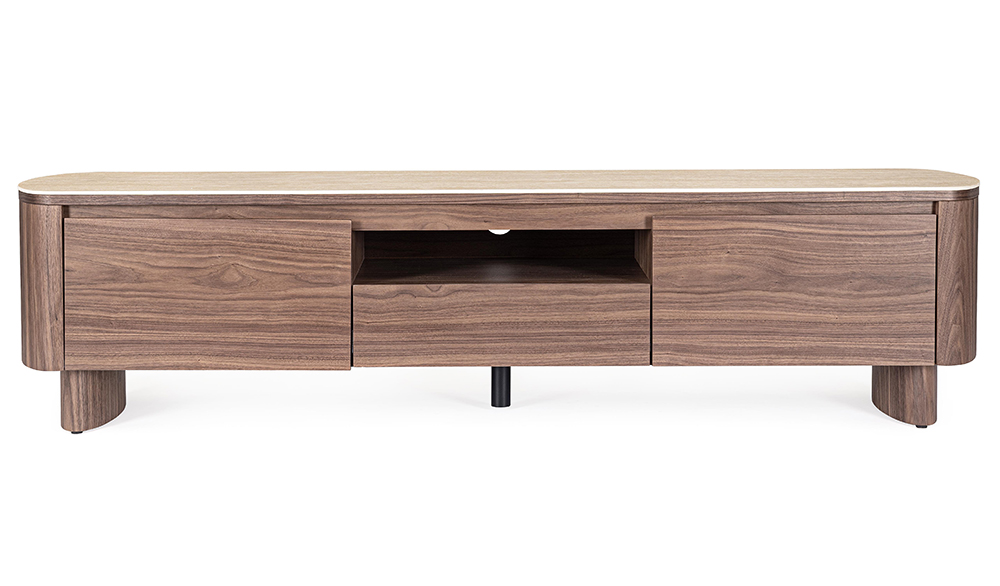 Mesa de televisión curvo nogal y porcelánico Kezel de lujo
