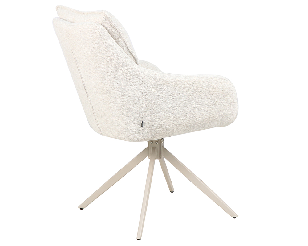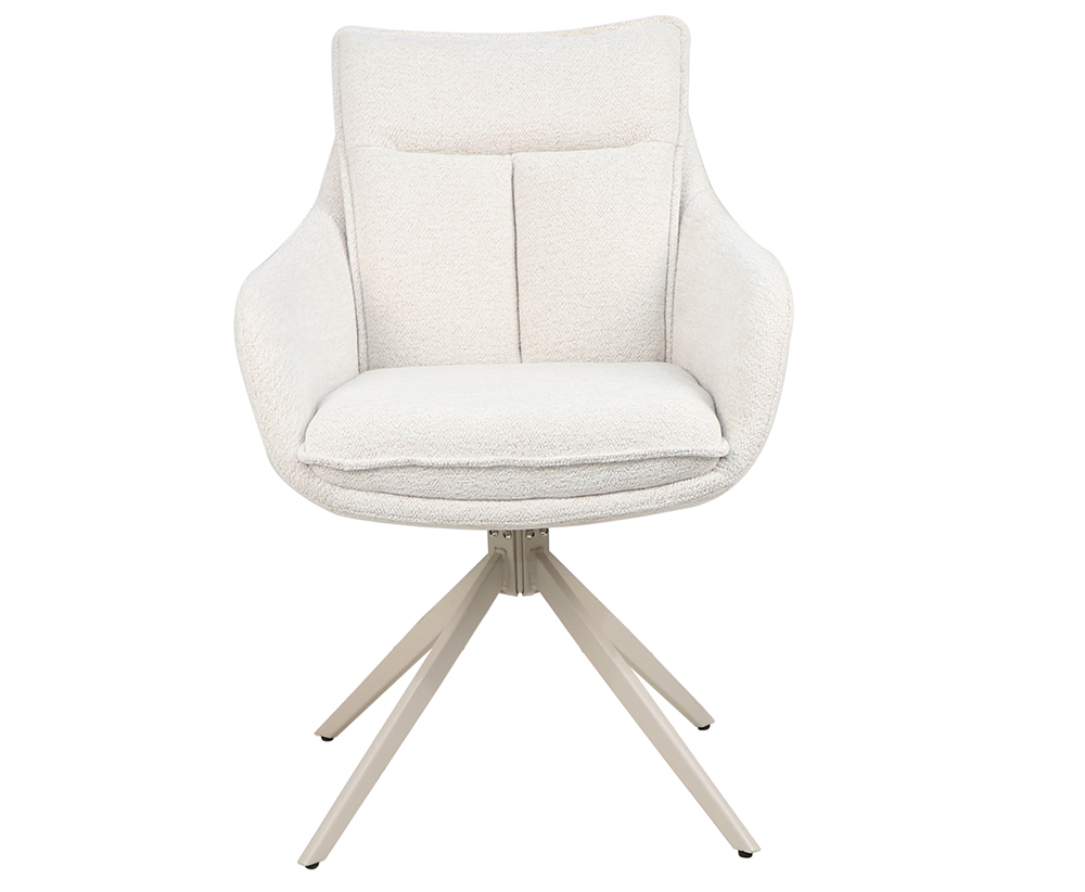 El sillón giratorio Gaia combina confort y estilo con su tapizado en tono beige y una elegante base metálica en color crema. Su diseño envolvente y funcionalidad giratoria lo hacen ideal para espacios modernos y dinámicos. Aporta calidez y sofisticación, adaptándose tanto a salones como a zonas de trabajo. Una pieza versátil que destaca por su estética y comodidad.