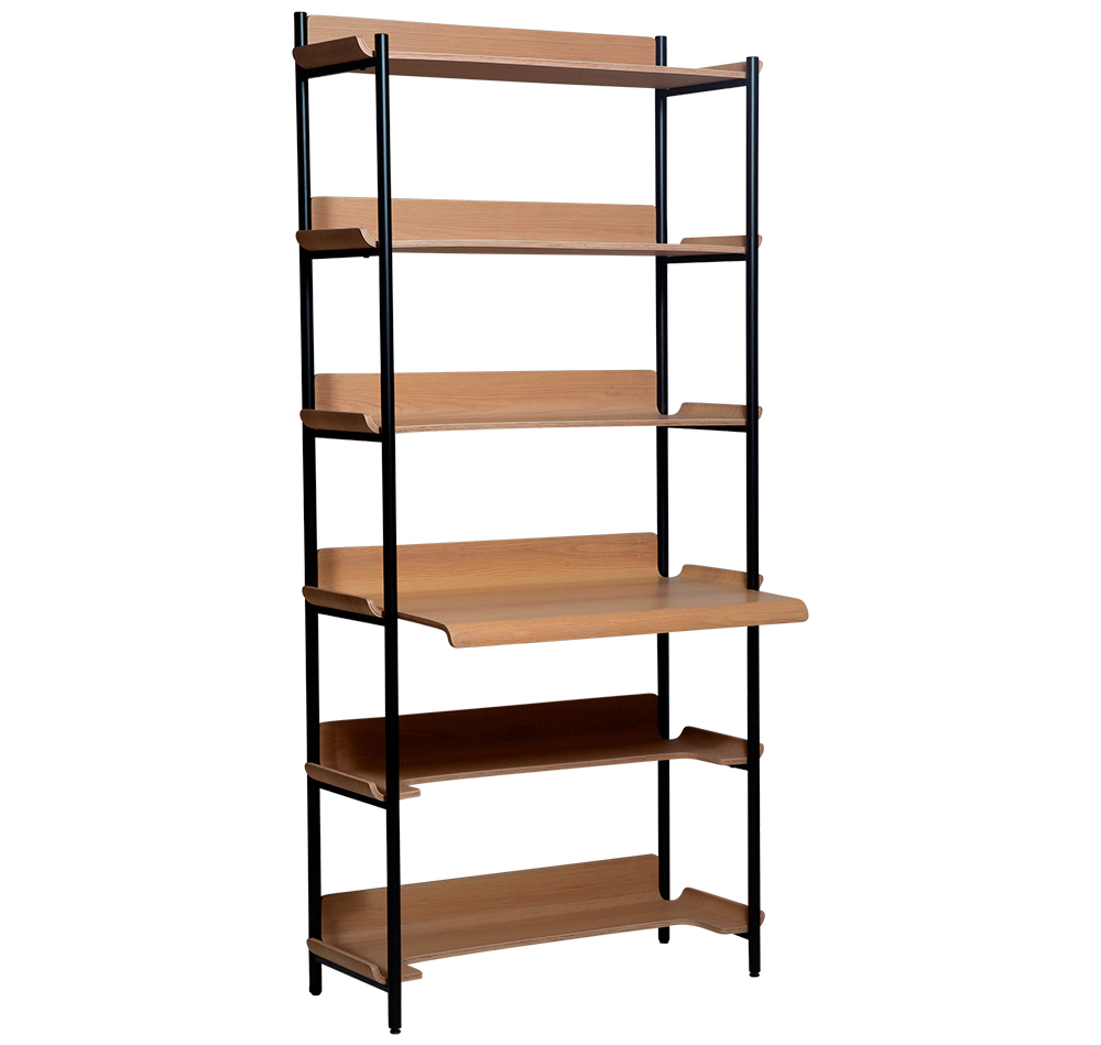 Librería con escritorio industrial chapa natural roble blanqueado Friyay