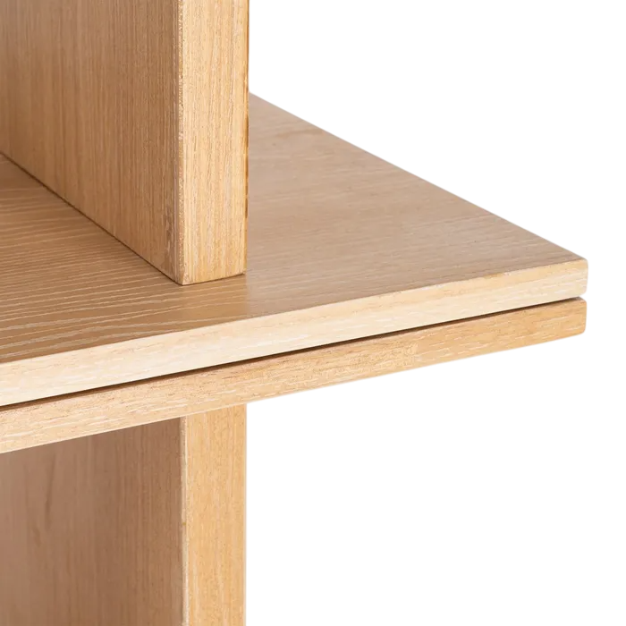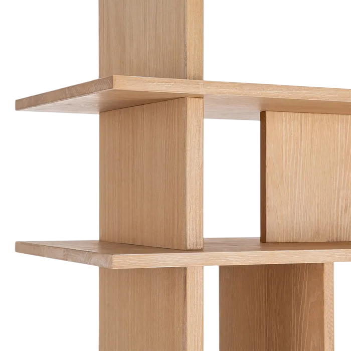 Esta estantería está hecha en madera de caucho con un acabado natural que resalta su veta cálida y uniforme. Su diseño es vertical y moderno, compuesto por varias baldas amplias que se sostienen mediante una estructura de divisores rectos que crean un ritmo visual ordenado y geométrico. Entre los estantes aparecen dos paneles frontales de madera colocados en diferentes alturas, que funcionan como elementos decorativos y aportan variedad al conjunto, generando zonas parcialmente cerradas dentro de la estantería. Las baldas tienen los bordes suavemente redondeados, lo que suaviza su silueta y equilibra el carácter estructural de las líneas rectas. Con unas medidas de 120 cm de ancho, 38 cm de fondo y 203 cm de alto, es una pieza alta y esbelta, ideal para organizar libros y objetos decorativos en salones, despachos o espacios contemporáneos donde se busque una estantería funcional, ligera y visualmente interesante.