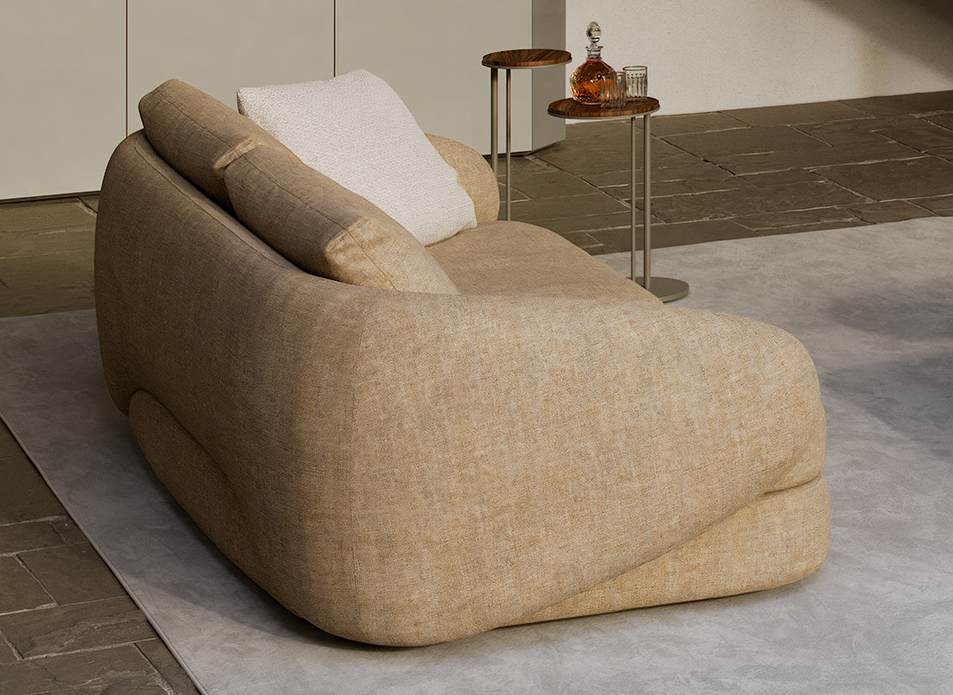 El apoyabrazos de Craig no es solo un elemento funcional: su forma envolvente da la sensación de un cálido abrazo, convirtiendo cada momento en una experiencia íntima y reconfortante. Es ideal para quienes buscan un sofá que combine diseño y calidez.