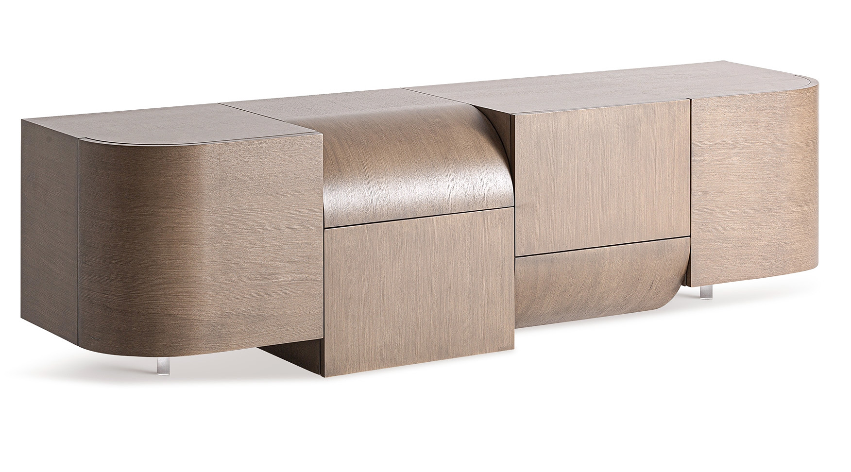El Mueble TV Aksaray destaca por su reinterpretación refinada del estilo art déco, combinando líneas curvas y volúmenes suaves con la solidez y calidez del roble. Su acabado en tonos cálidos aporta una sensación de serenidad y equilibrio, haciendo que la pieza encaje con naturalidad en interiores elegantes y contemporáneos. El diseño integra puertas abatibles y compartimentos amplios que permiten organizar con discreción todo tipo de accesorios, mientras que su estructura ligeramente elevada y su composición de módulos curvos aportan dinamismo sin perder sobriedad. Con unas medidas de 190 cm de ancho, 50 cm de fondo y 53 cm de alto, es un mueble funcional y decorativo que suma distinción y personalidad a cualquier salón.