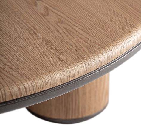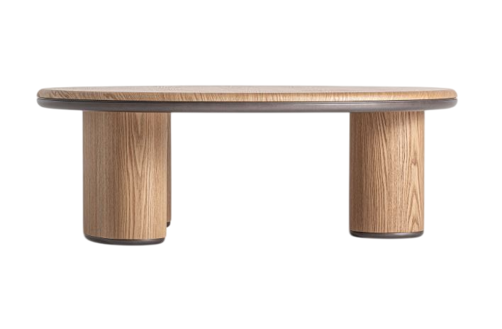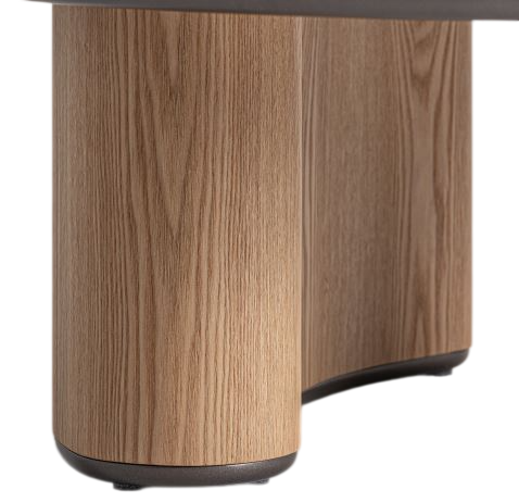 Esta mesa de centro presenta un diseño elegante y contemporáneo de líneas suaves y formas orgánicas. Está fabricada en madera DM con acabado en color marrón claro, que aporta luminosidad y resalta la textura natural de la madera, combinándose con detalles en madera en tono marrón que añaden profundidad y contraste al conjunto. El tablero circular de bordes redondeados transmite una sensación de equilibrio y solidez, mientras que la base, compuesta por dos apoyos de formas curvas y robustas, aporta estabilidad y un carácter escultórico al diseño. Las superficies cuentan con un acabado cuidado y uniforme, agradable al tacto y visualmente armonioso. Con unas dimensiones de 100 cm de ancho, 100 cm de fondo y 35 cm de alto, esta mesa de centro es ideal para salones modernos, ofreciendo una combinación perfecta de funcionalidad, calidez y estilo.